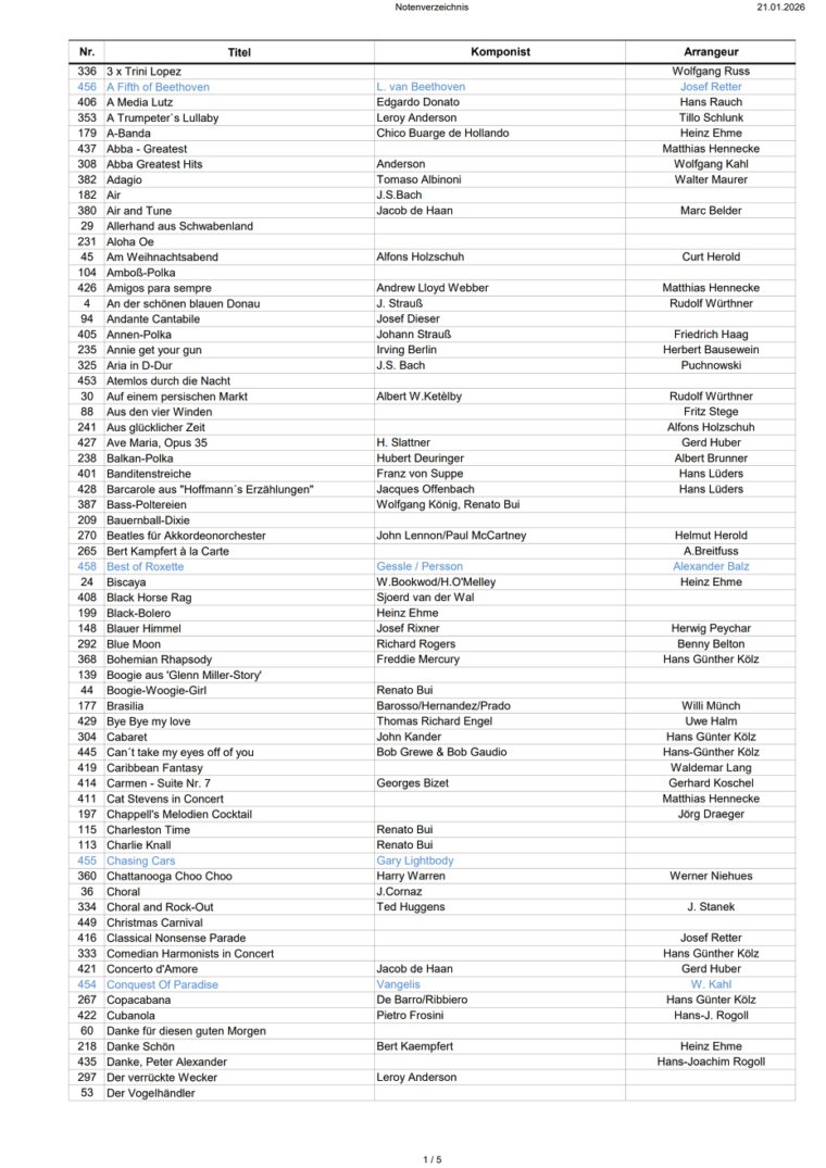 Notenverzeichnis